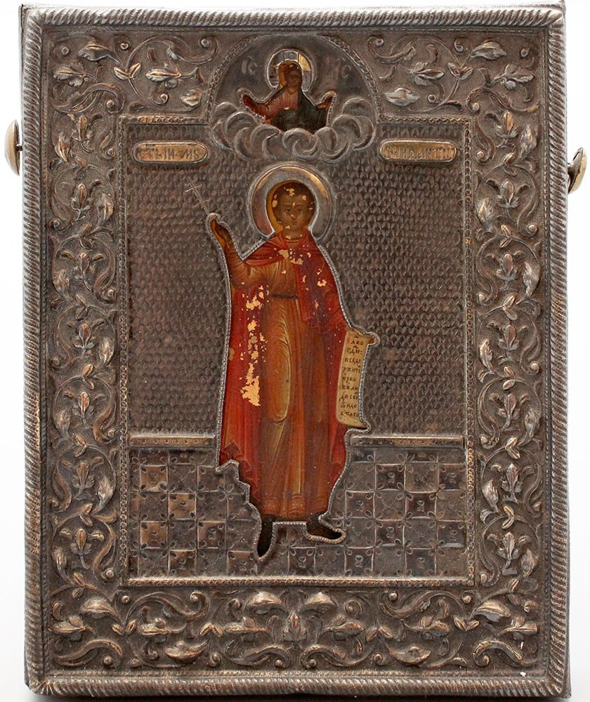 Старинная иконка Святого Мученика Вонифатия в серебряном окладе, Россия, Москва, 1854 г.