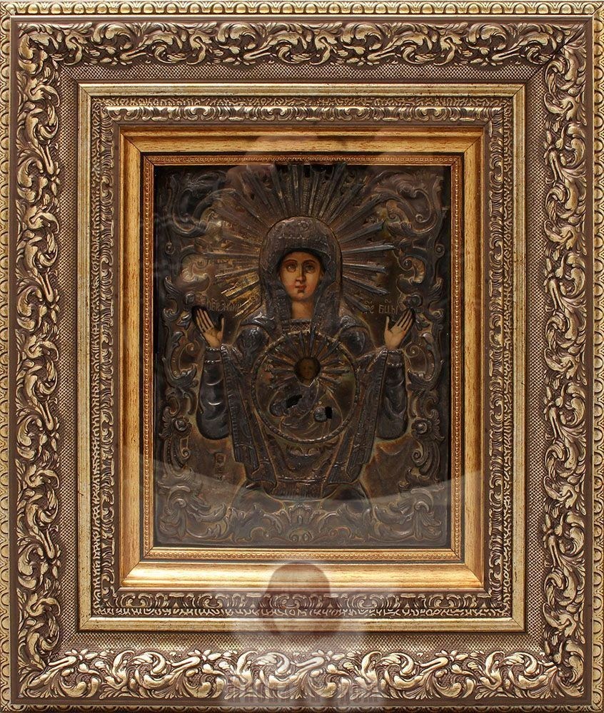 Старинная русская икона Божией Матери «Знамение», серебряный оклад, Россия, Астрахань, 1869 г.