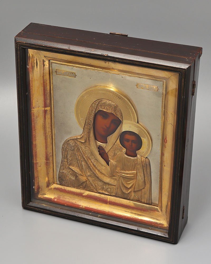 Икона Богоматери «Казанская» в серебряном окладе и киоте, Москва, нач. 20 в.
